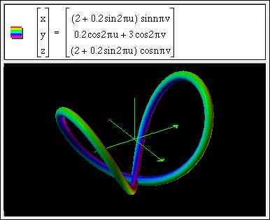 This parametric surface shows a tube drawn around a lissajous pattern in 3D. By varying the parameter n, different patterns can be made.